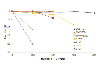 The reliability and outdoor performance of a PV module is one of the end user’s biggest concerns because the in- vestment is a medium to long term investment and there- fore has to last over the years. Even the highest-efficiency module needs to last 20 to 40 years in outdoor condi- tions. Here, extended climatic chamber tests required for IEC certification, damp heat (DH, 85% relative humidity, 85°C) and thermal cycling (TC, -40°C to 85°C in 6 hours) are presented. Damp heat is critical for the encapsulation material and the cell technology, whereas thermal cycling is vital when it comes to the reliability of interconnection technology.
